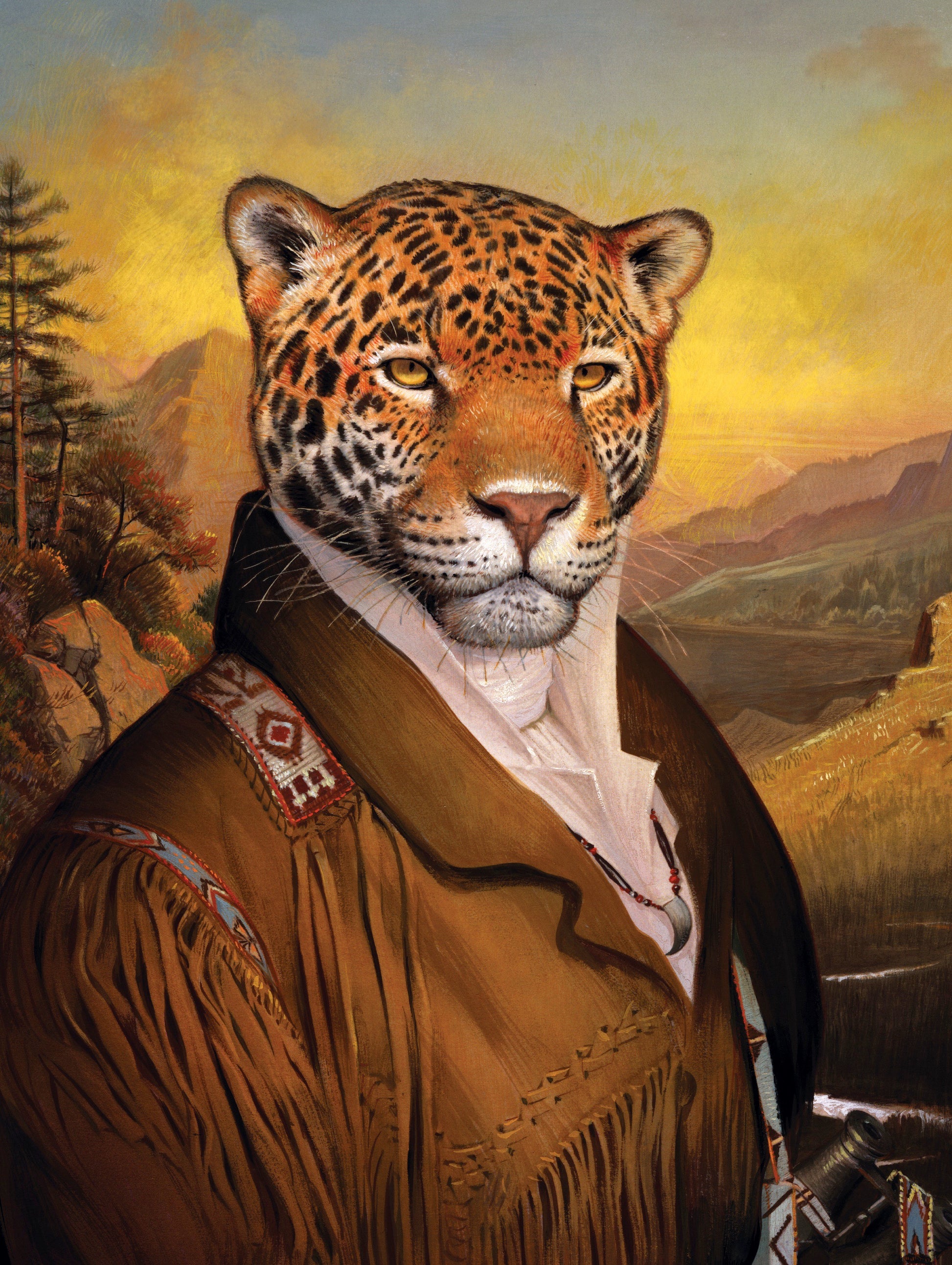 Saddle up for a laugh with El Jefe, featuring the witty and imaginative artwork of Bill Mayer. This humorous scene portrays a distinguished jaguar dressed as a frontiersman, complete with rugged attire and a commanding presence, set against the warm hues of a Western sunset. The fusion of wild feline elegance and frontier charm makes this puzzle a unique and entertaining challenge.
