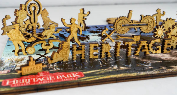 Every piece of Heritage Express is cut from A-grade Poplar Plywood, 1/4″ (6 mm) thick, for a sturdy, premium-quality feel. UV-printed on the front and laser-engraved on the back, this double-sided puzzle merges visual storytelling with tactile engagement for a one of a kind puzzling experience.