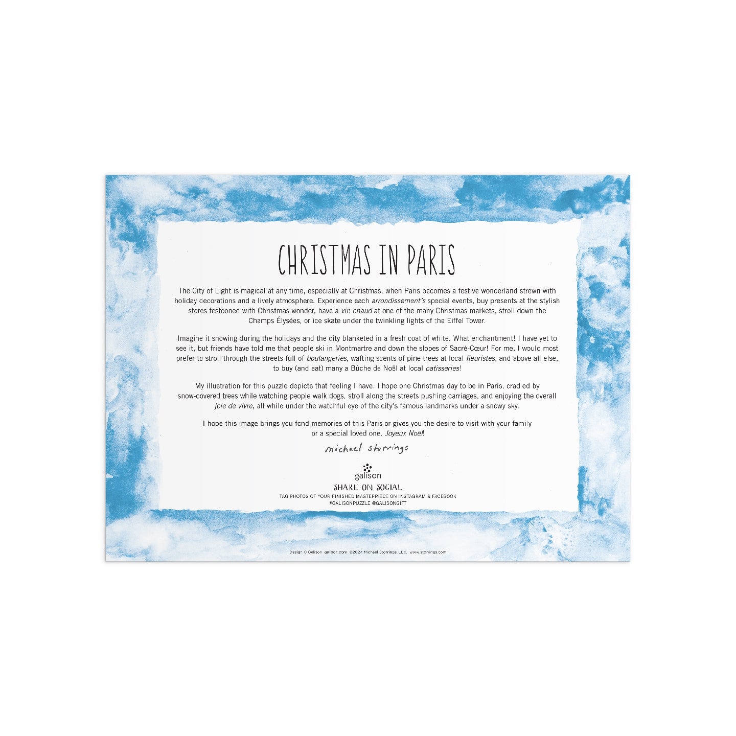 Michael Storrings Christmas In Paris 1000 Piece by Galison features joie de vivre of Christmas in the foil accented and snow-dusted streets of Saint Germain, Paris.