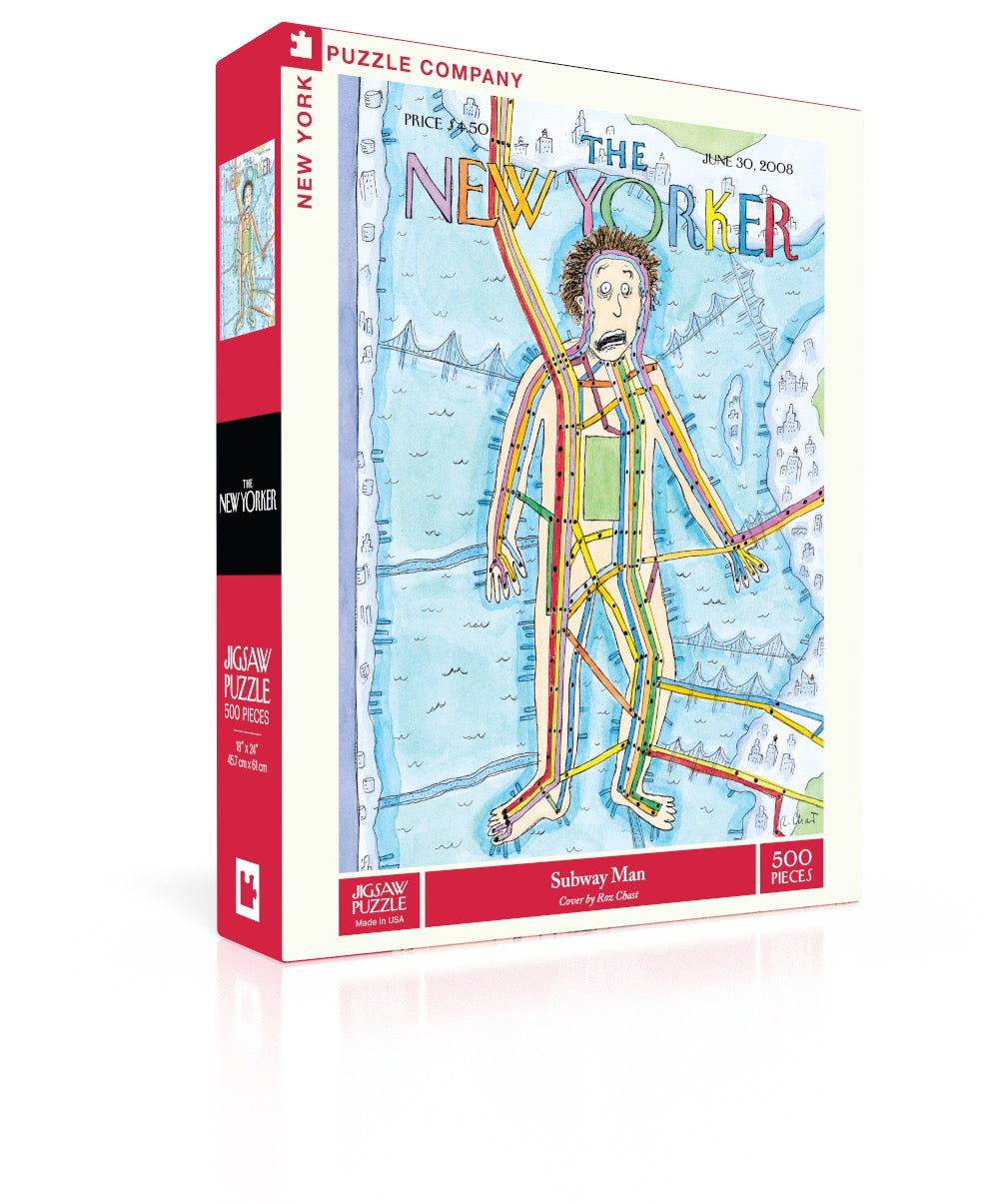 Navigate the quirky chaos of city life with Subway Man, a 500-piece jigsaw puzzle showcasing Roz Chast’s iconic and humorous illustration from the June 30, 2008 cover of The New Yorker. Known for her offbeat style and witty social commentary, Chast turns the New York City subway map into a tangled, human-shaped maze—complete with wide eyes and transit-induced stress. A playful take on urban commuting, this puzzle is perfect for anyone who knows the struggle of getting from uptown to downtown (and everywhere in between).