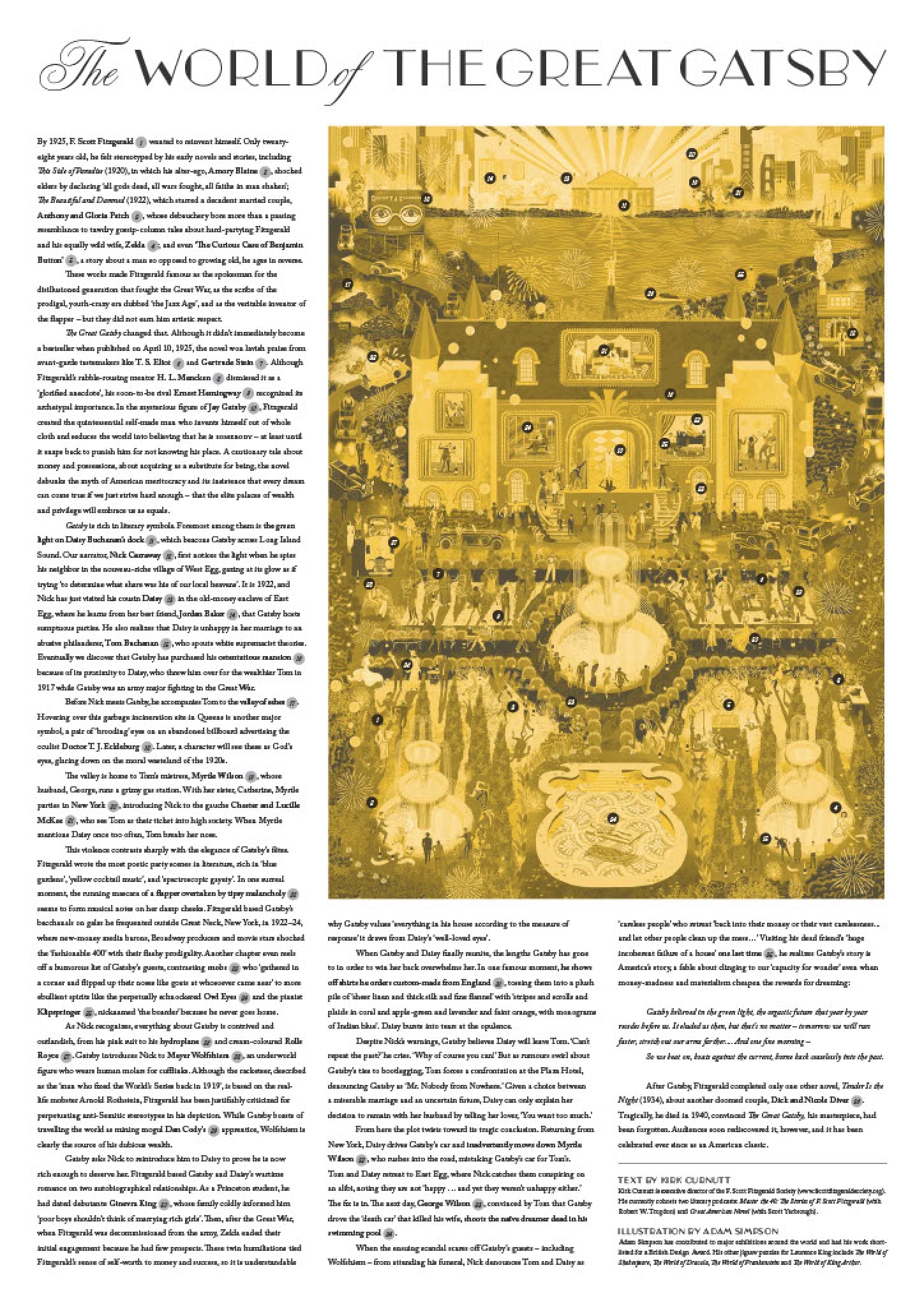 FEATURING AN ORIGINAL ILLUSTRATION packed with detail and a large poster with an introduction to the novel by Kirk Curnutt, executive director of the F. Scott Fitzgerald Society