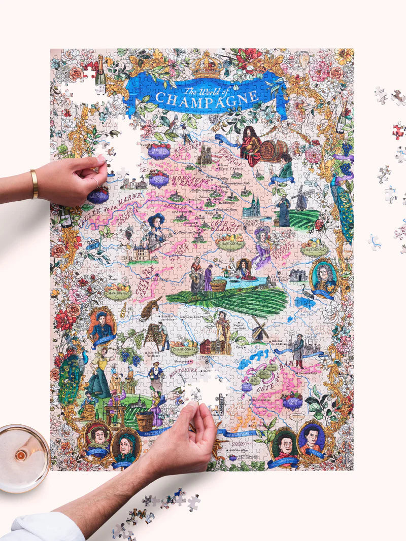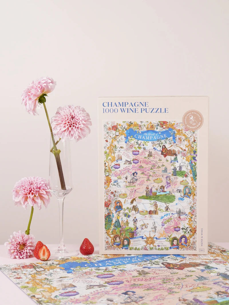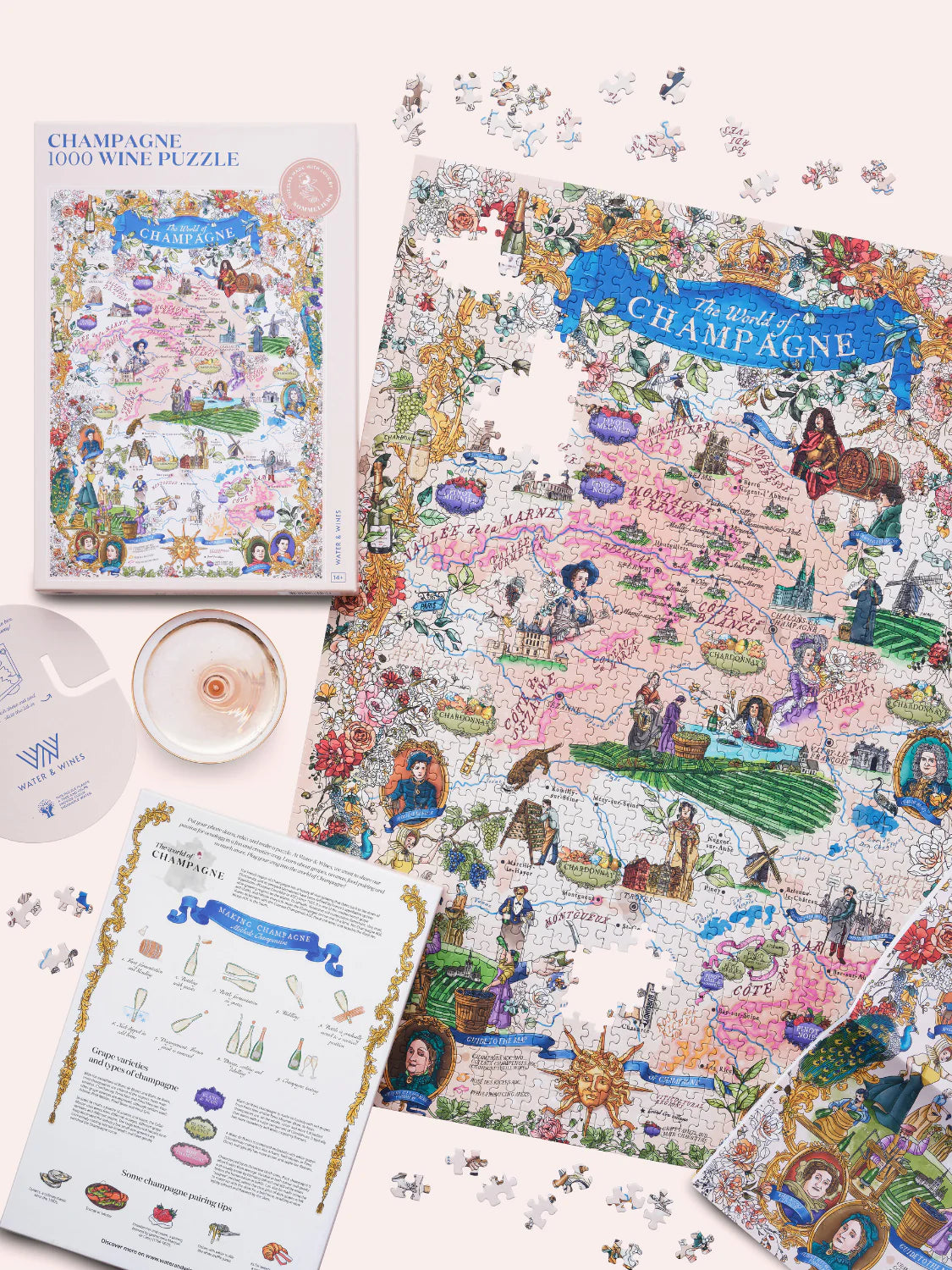 Indulge yourself in the luxurious world of sparkling wine with our Champagne jigsaw puzzle. Delicately hand-illustrated, it showcases the prestigious Champagne region of France, home to the world's finest bubbly, and celebrates the region's rich history and culture. Curated in collaboration with Master of Wine and champagne specialist Essi Avellan, the puzzle highlights the main regions of Champagne, all 17 Grand Cru villages, and maps out the grape varieties that make this celebrated wine style, such as Chardonnay, Pinot Noir, and Pinot Meunier.