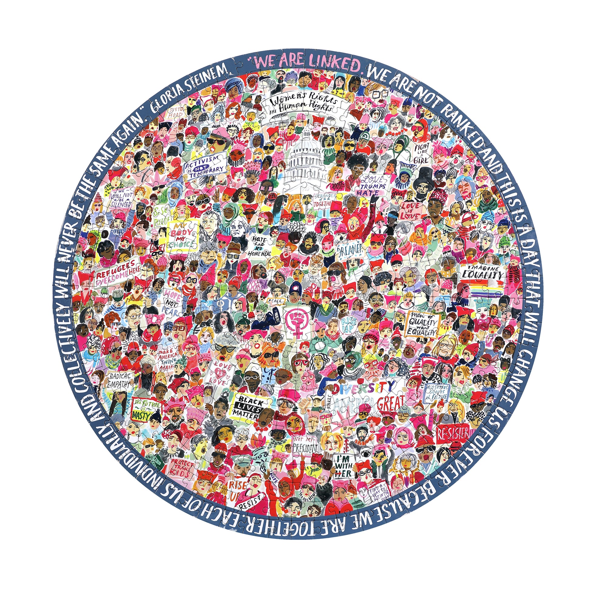 Featuring a quote by Gloria Steinem from the march: "We are linked, we are not ranked, and this is a day that will change us forever because we are together, each of us individually and collectively will never be the same again."